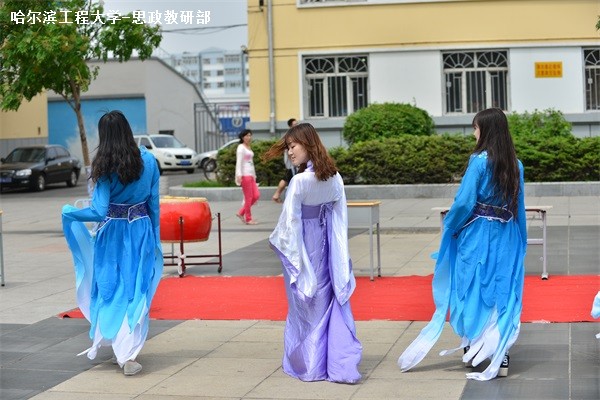 活动由歌曲《星月神话》拉开序幕。一缕清音,一身垂拱,台上的歌者一派安闲。紧接着到了太极拳展示,上台的是身着白衣的太极协会成员,伴着轻柔的音乐,起承转合,将传统太极表现得淋漓尽致。表演结束后,演员走下舞台向观众鞠躬,台上文人铺席研墨,展纸提笔,文人展现了不俗的书法功力,一首小诗跃然纸上。随后,特邀嘉宾为大家带来了海南方言和闽南方言版的诗歌群诵,冰城汉韵协会的同袍身着汉服,伴着恢弘雅致的礼乐进行了汉礼展示。民舞《礼仪之邦》的表演更是让人感受到了汉文化的无穷魅力。最后,活动在掌声中中完美地落下帷幕。