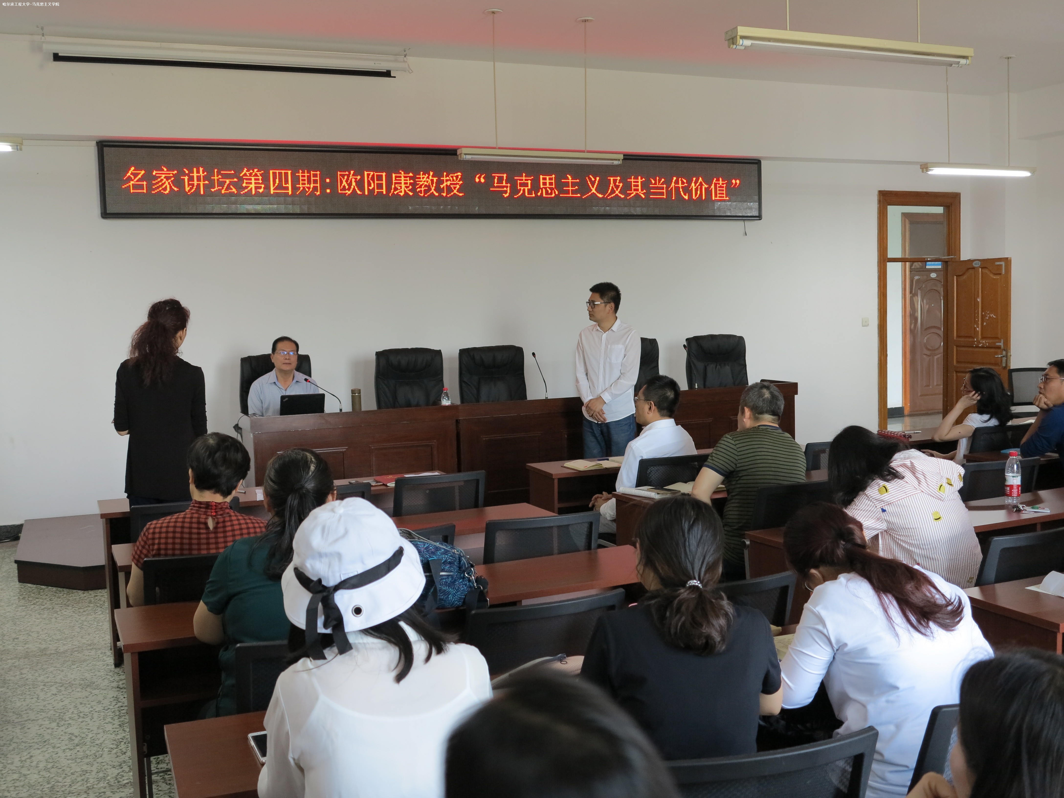欧阳康教授本次所作报告主题是“马克思主义及其当代价值”。欧阳康教授从马克思主义发展的历史出发,重点分析了苏联社会主义模式的形成、发展和消亡历程。之后又对中国马克思主义的发展进行历史脉络的梳理,结合习近平在纪念马克思诞辰200周年的讲话背景,对当代中国的社会建设尤其是文化建设的内容进行了重点阐述,不时穿插自身的学术和生活经历,为我院师生奉献了一场丰盛学术盛宴。