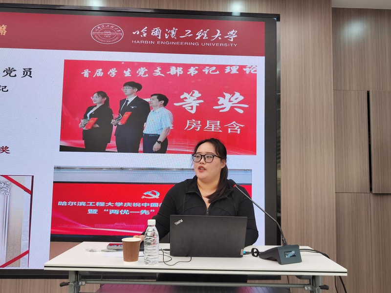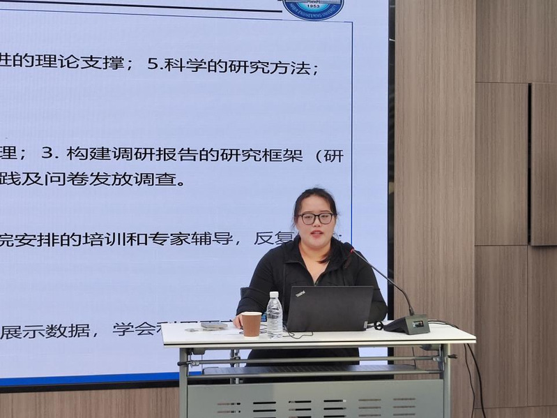 硕士研究生房星含以“马不停蹄的赶路人”为题,从思想、学业、科研、实践四部分进行学术报告,并着重分享了其参与“挑战杯”、中国国际大学生创新大赛的经历。她详细介绍了此类竞赛的赛道设置、参赛流程、作品类别以及参赛要求,并结合自身参与项目,分享了如何选题、调研、撰写报告以及提交作品的经验,为在场研究生提供了经验借鉴。