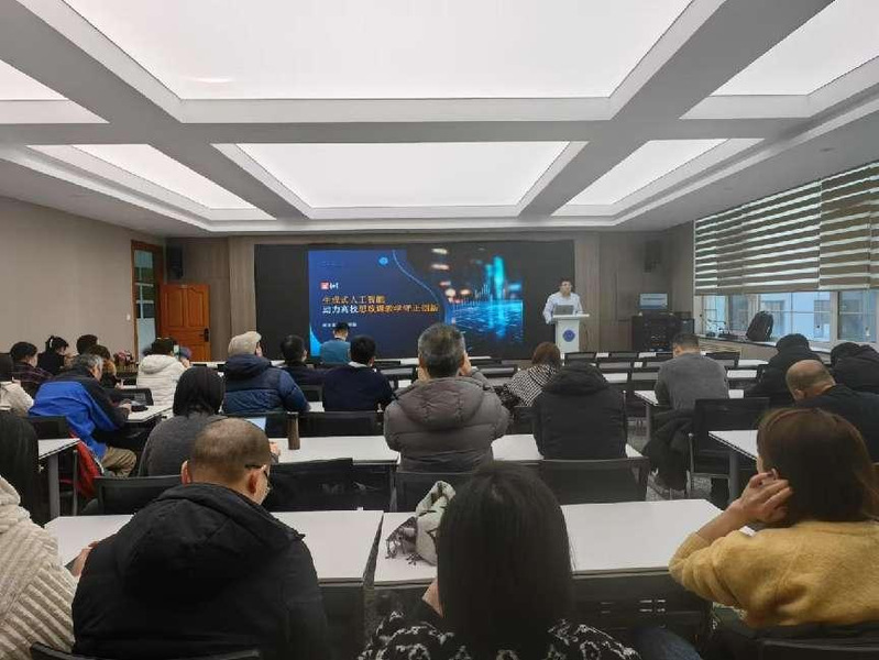 2025年1月2日下午,太阳成城集团tyc234cc教育教学改革与教师发展中心在主楼420会议室组织“思政课教师数智化素养提升”专题培训会,北京世纪超星信息技术发展有限责任公司课程建设工程师朱博瀚以《生成式人工智能,助力高校思政课教学守正创新》为题作专题报告。会议由太阳成城集团tyc234cc党委副书记、副院长潘强主持,全体思政课教师参会。