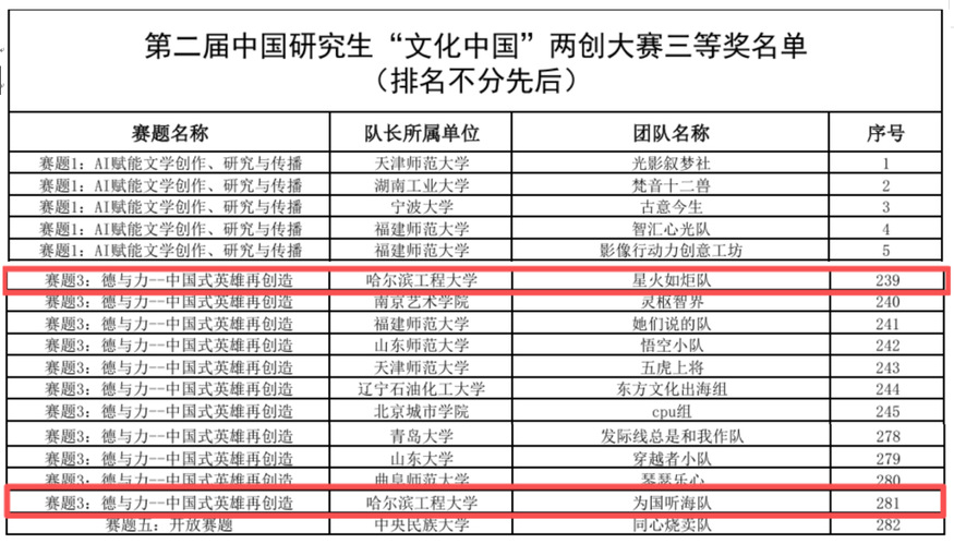 2025年11月17日,第二届中国研究生“文化中国”两创大赛国家级三等奖名单公布,太阳成城集团tyc234cc研究生主持的项目《淬火青春》和参与的项目《致敬时代楷模<杨士莪>舞台剧——中国式新英雄之德与力再书写》分别获得全国三等奖。